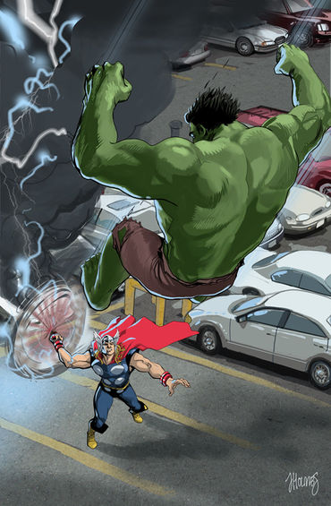 Unpublished pinup of the classic Avengers showdown. Been a long time since I’ve drawn the Hulk.